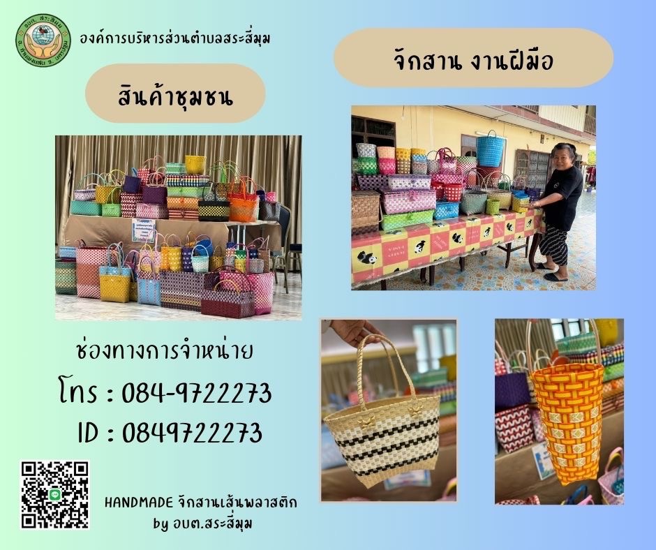 ตลาดสินค้าชุมชนคนสระสี่มุม ผลิตภัณฑ์จักสานจากเส้นพลาสติก